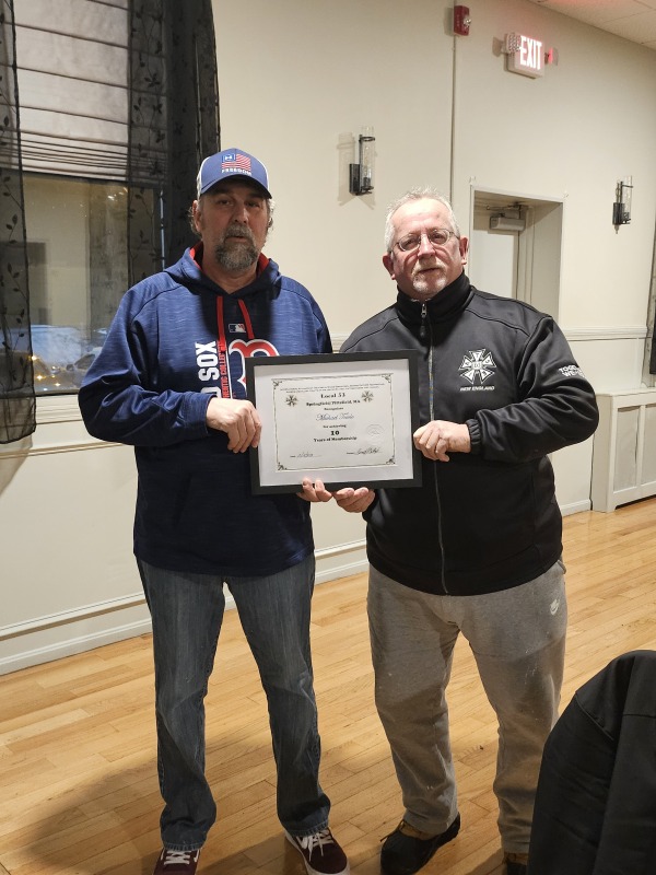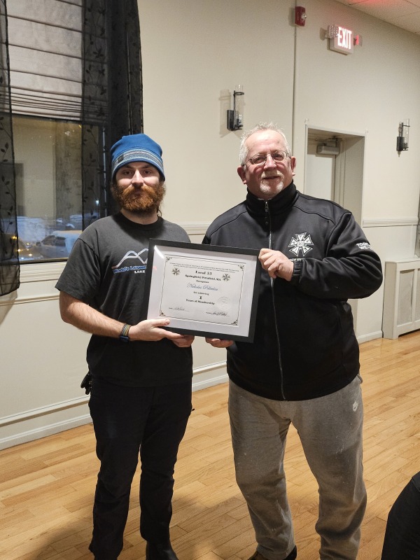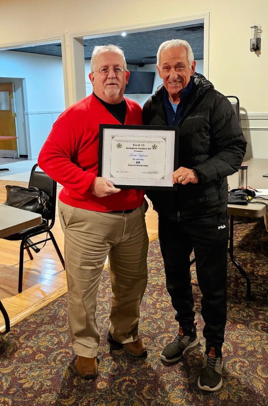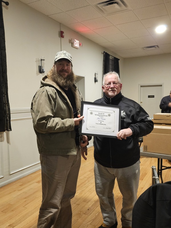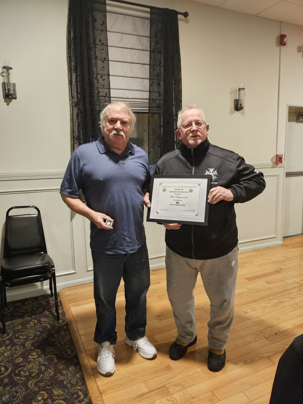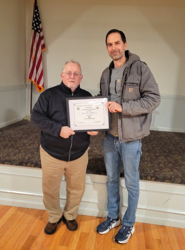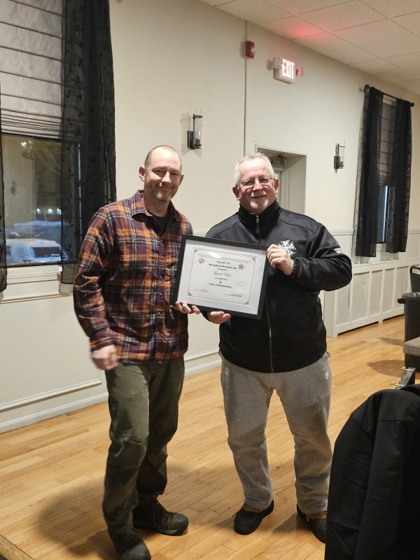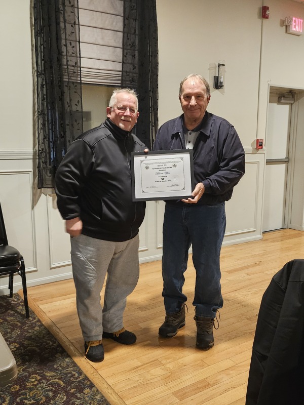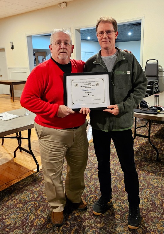 Members receive Years of Membership Certificates & Lapel Pins at various gatherings.